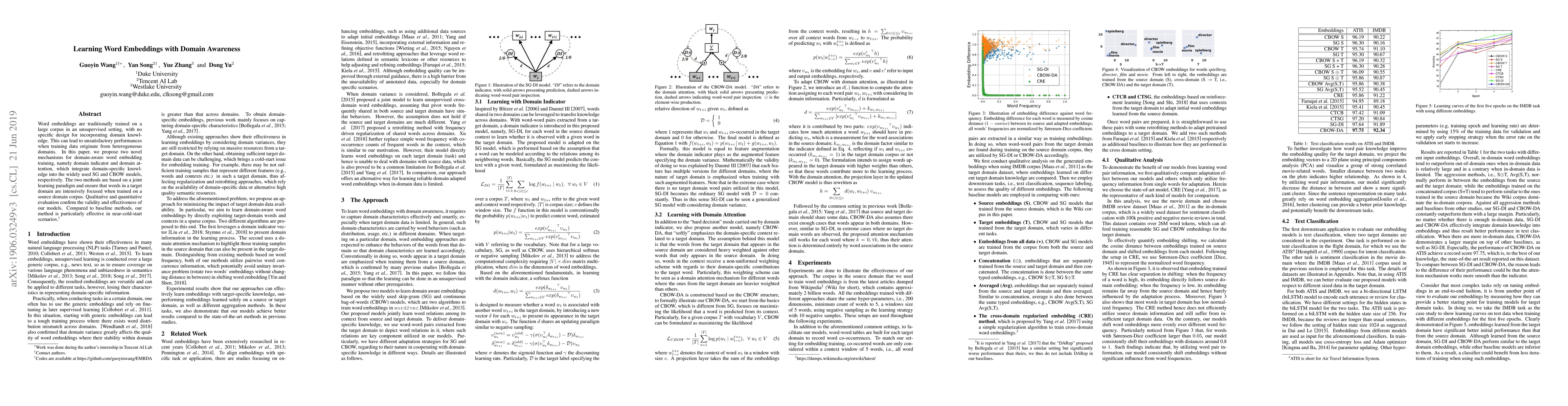 The paper proposes domain-aware mechanisms—domain indicator and domain attention—to improve word embeddings trained on heterogeneous domain data. These methods integrate domain-specific knowledge into SG and CBOW models, enhancing performance in near-cold-start scenarios, as validated through qualitative and quantitative evaluations.