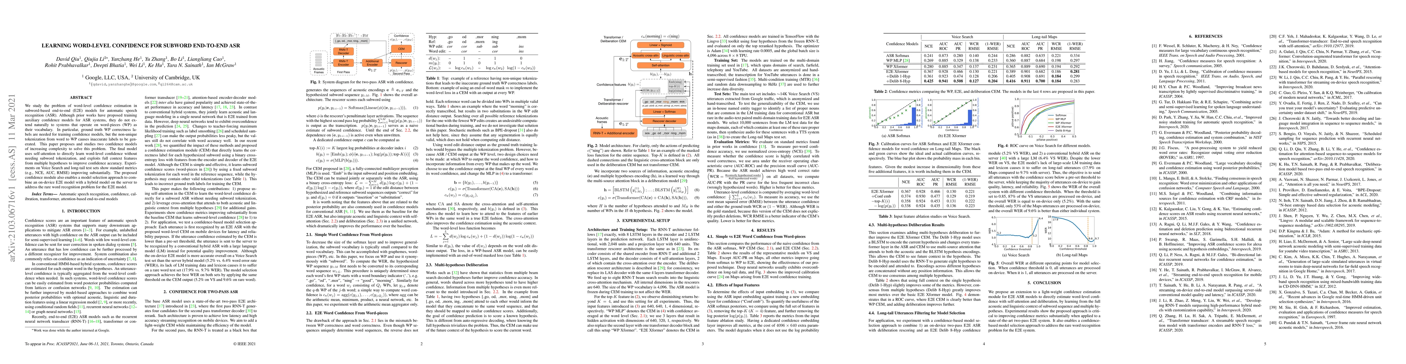 This paper proposes confidence models for subword-based end-to-end ASR systems to address the challenge of word-level confidence estimation without requiring subword tokenization. The proposed model uses self-attention to learn word-level confidence directly, improving accuracy and enabling a model selection approach to enhance rare word recognition.