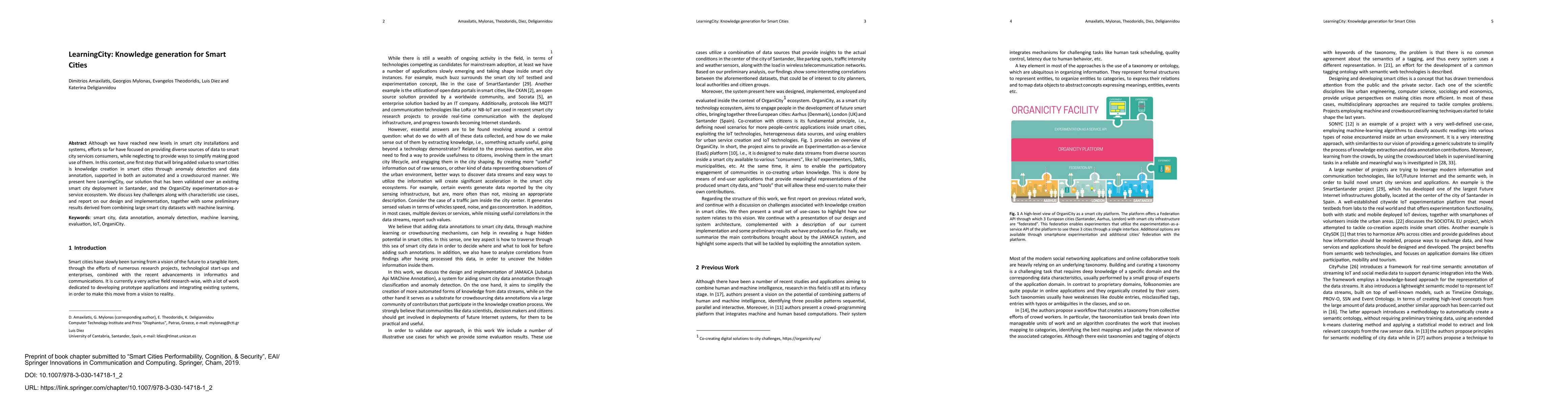 LearningCity aims to enhance smart cities by generating knowledge through automated and crowdsourced anomaly detection and data annotation. Preliminary results from its implementation in Santander demonstrate the potential of combining large smart city datasets with machine learning to create valuable insights.