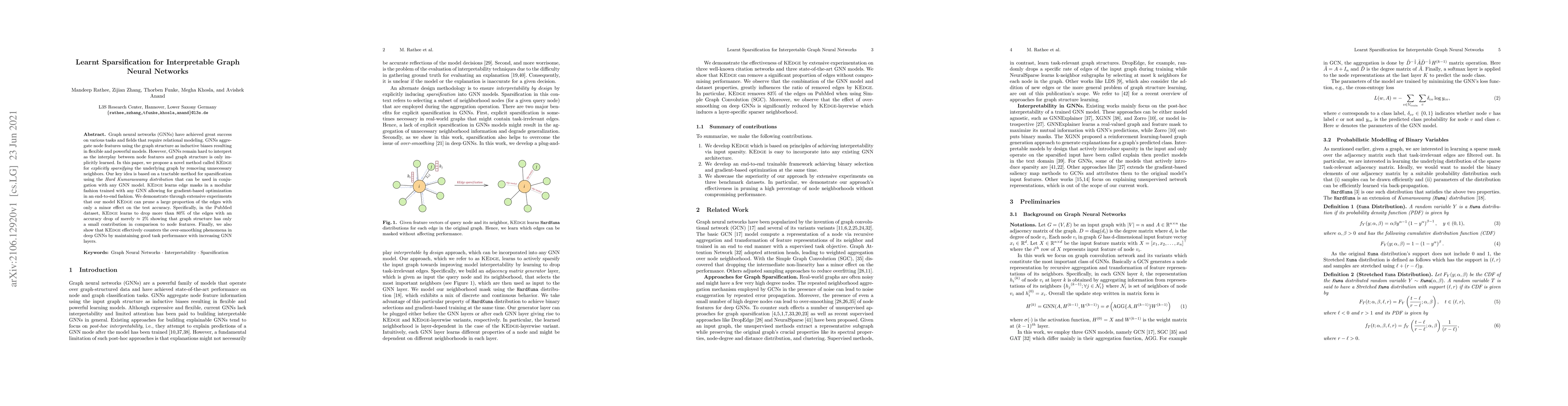 Graph neural networks (GNNs) have achieved great success on various tasks and fields that require relational modeling. GNNs aggregate node features using the graph structure as inductive biases resulting in flexible and powerful models. However, GNNs remain hard to interpret as the interplay between node features and graph structure is only implicitly learned. In this paper, we propose a novel method called Kedge for explicitly sparsifying the underlying graph by removing unnecessary neighbors. Our key idea is based on a tractable method for sparsification using the Hard Kumaraswamy distribution that can be used in conjugation with any GNN model. Kedge learns edge masks in a modular fashion trained with any GNN allowing for gradient based optimization in an end-to-end fashion. We demonstrate through extensive experiments that our model Kedge can prune a large proportion of the edges with only a minor effect on the test accuracy. Specifically, in the PubMed dataset, Kedge learns to drop more than 80% of the edges with an accuracy drop of merely 2% showing that graph structure has only a small contribution in comparison to node features. Finally, we also show that Kedge effectively counters the over-smoothing phenomena in deep GNNs by maintaining good task performance with increasing GNN layers.
