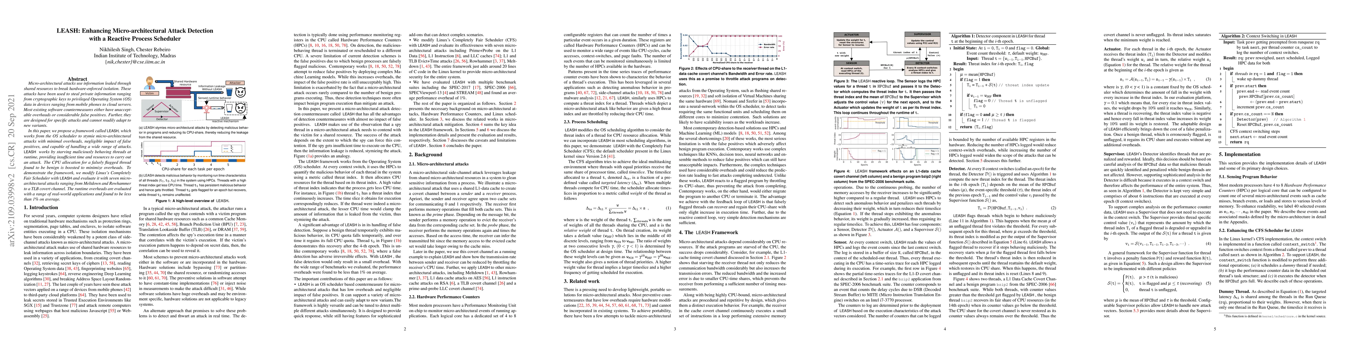 This paper proposes LEASH, a framework that enhances micro-architectural attack detection through a reactive process scheduler, aiming to minimize overheads and false positives while effectively thwarting a wide range of attacks by starving malicious threads. Evaluations show runtime overheads below 1% on average.