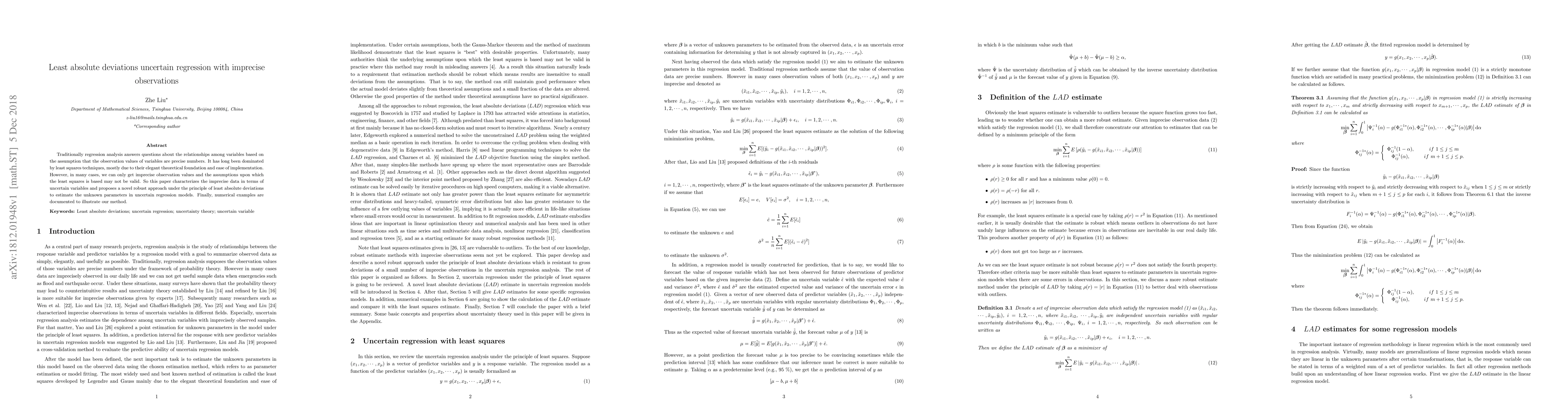 This paper proposes a novel least absolute deviations approach for uncertain regression models to handle imprecise observations, contrasting traditional least squares methods. It demonstrates the robustness of the new method through numerical examples.