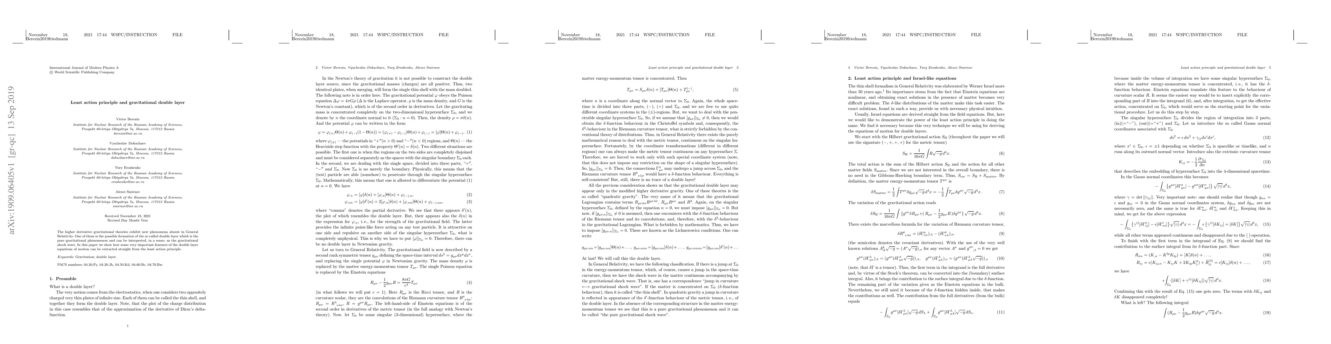 This paper explores how the least action principle can reveal features of double layer phenomena in higher derivative gravitational theories, shedding new light on gravitational shock waves.