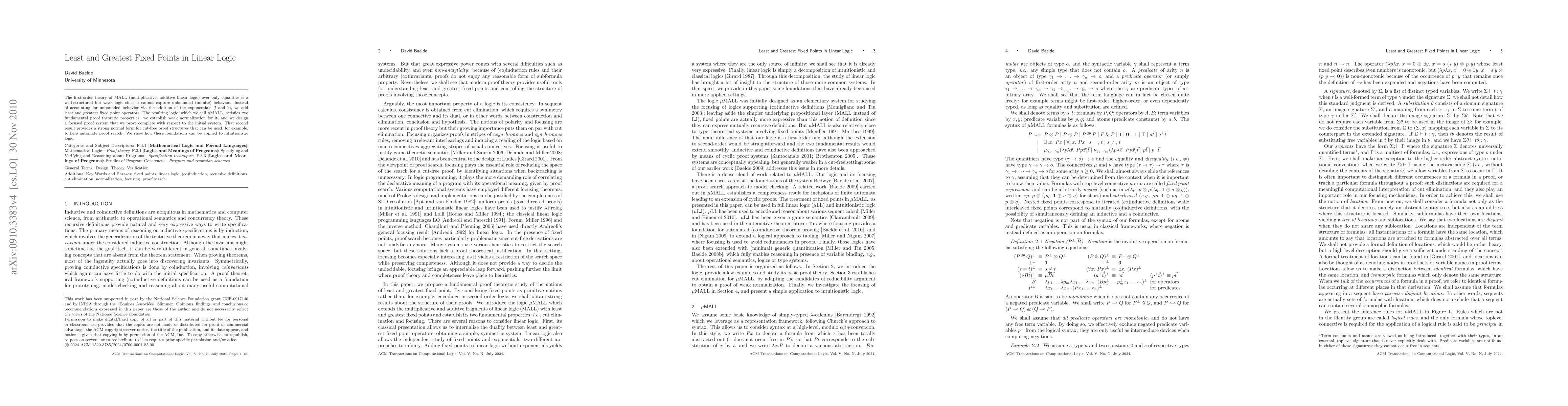 The paper introduces muMALL, a variant of MALL linear logic enhanced with least and greatest fixed point operators, achieving weak normalization and completeness via a focused proof system. This framework provides a strong normal form for automated proof search and extends to intuitionistic logic.