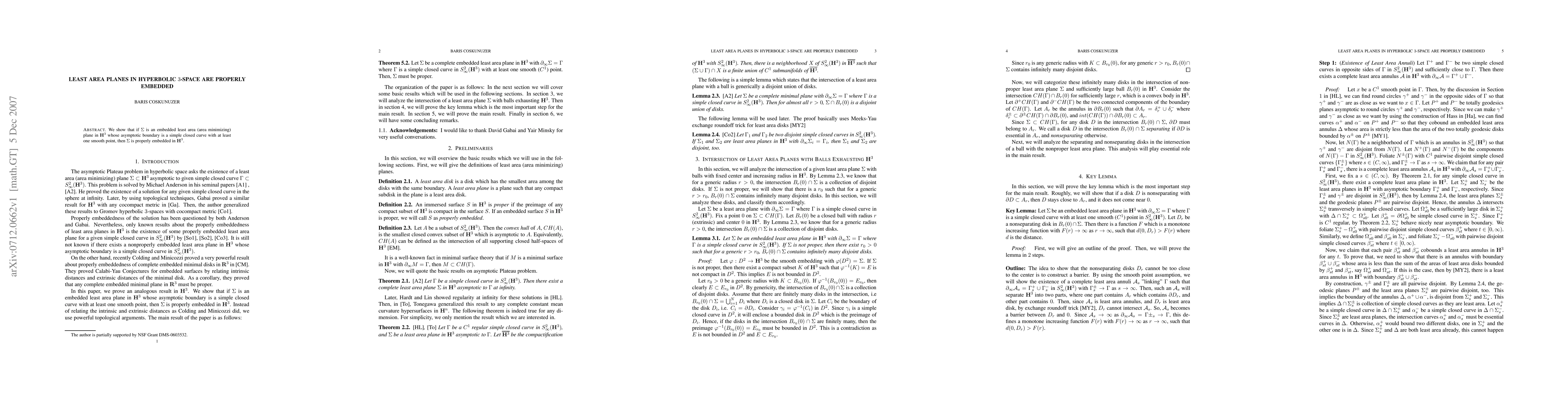 Summary: The paper demonstrates that embedded least area planes in hyperbolic 3-space, with an asymptotic boundary that includes at least one smooth point, are properly embedded. This means the plane minimizes area without leaving the hyperbolic space.