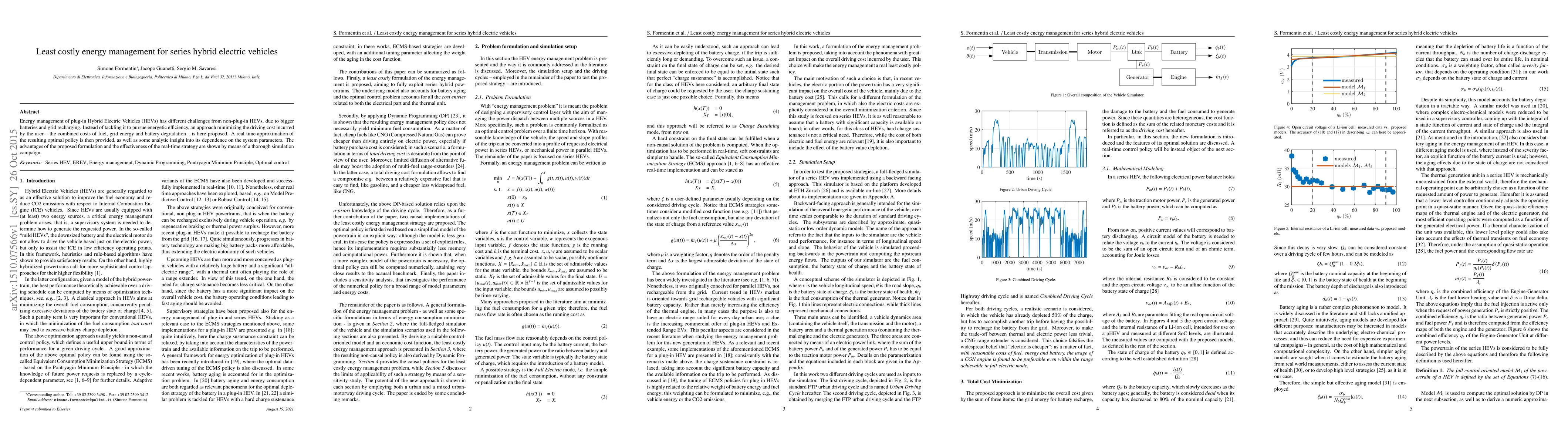 This paper proposes an energy management strategy for plug-in Hybrid Electric Vehicles (HEVs) aimed at minimizing driving costs, including fuel, grid energy, and battery degradation. A real-time approximation of the optimal policy is provided, validated through extensive simulations.