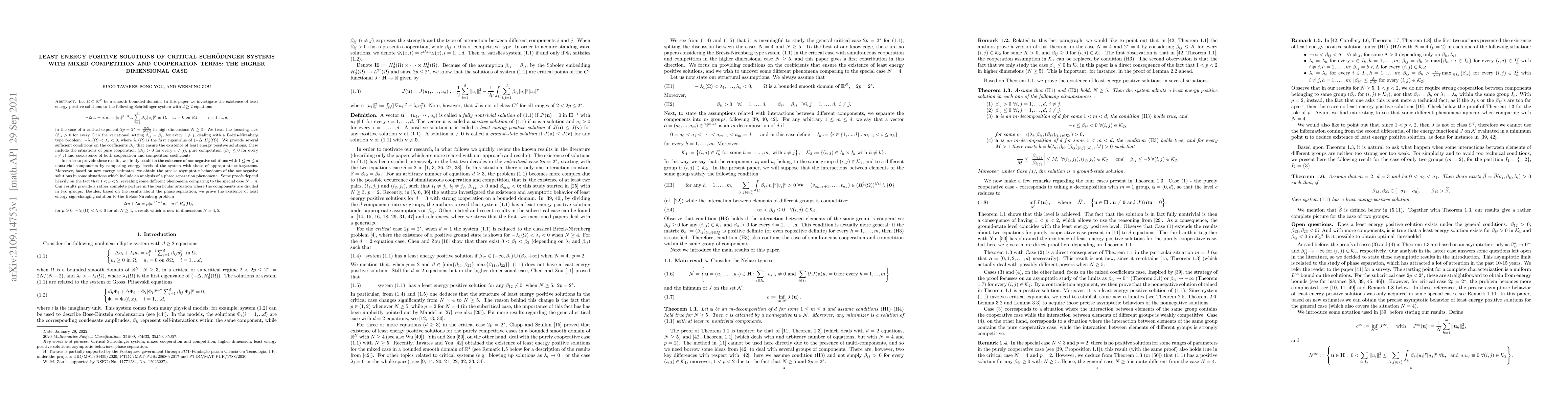 Let $\Omega\subset \mathbb{R}^{N}$ be a smooth bounded domain. In this paper we investigate the existence of least energy positive solutions to the following Schr\"{o}dinger system with $d\geq 2$ equations \begin{equation*} -\Delta u_{i}+\lambda_{i}u_{i}=|u_{i}|^{p-2}u_{i}\sum_{j = 1}^{d}\beta_{ij}|u_{j}|^{p} \text{ in } \Omega, \quad u_i=0 \text{ on } \partial \Omega, \qquad i=1,...,d, \end{equation*} in the case of a critical exponent $2p=2^*=\frac{2N}{N-2}$ in high dimensions $N\geq 5$. We treat the focusing case ($\beta_{ii}>0$ for every $i$) in the variational setting $\beta_{ij}=\beta_{ji}$ for every $i\neq j$, dealing with a Br\'ezis-Nirenberg type problem: $-\lambda_{1}(\Omega)<\lambda_{i}<0$, where $\lambda_{1}(\Omega)$ is the first eigenvalue of $(-\Delta,H^1_0(\Omega))$. We provide several sufficient conditions on the coefficients $\beta_{ij}$ that ensure the existence of least energy positive solutions; these include the situations of pure cooperation ($\beta_{ij}> 0$ for every $i\neq j$), pure competition ($\beta_{ij}\leq 0$ for every $i\neq j$) and coexistence of both cooperation and competition coefficients. Some proofs depend heavily on the fact that $1