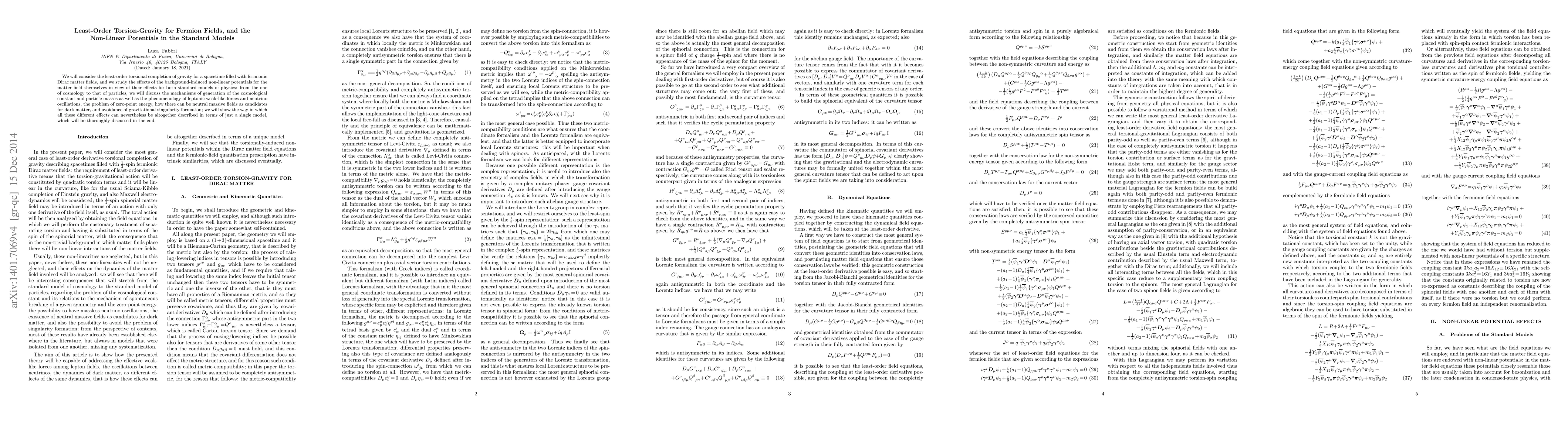 We will consider the least-order torsional completion of gravity for a spacetime filled with fermionic Dirac matter fields, and we study the effects of the background-induced non-linear potentials for the matter field themselves in view of their effects for both standard models of physics: from the one of cosmology to that of particles, we will discuss the mechanisms of generation of the cosmological constant and particle masses as well as the phenomenology of leptonic weak-like forces and neutrino oscillations, the problem of zero-point energy, how there can be neutral massive fields as candidates for dark matter, and avoidance of gravitational singularity formation; we will show the way in which all these different effects can nevertheless be altogether described in terms of just a single model, which will be thoroughly discussed in the end.