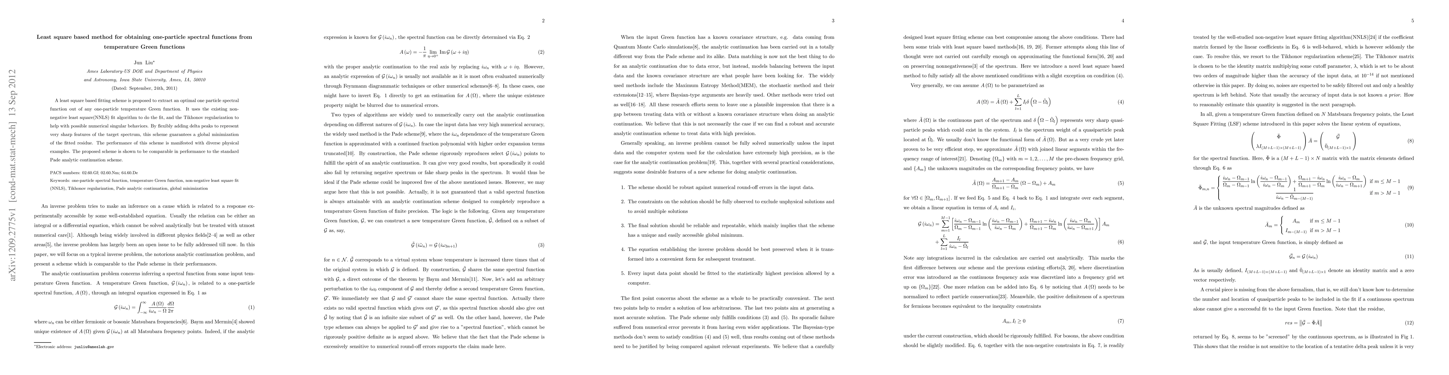 Researchers propose a new method using least squares to analytically continue one particle temperature Green functions, enabling more accurate spectral function calculations.