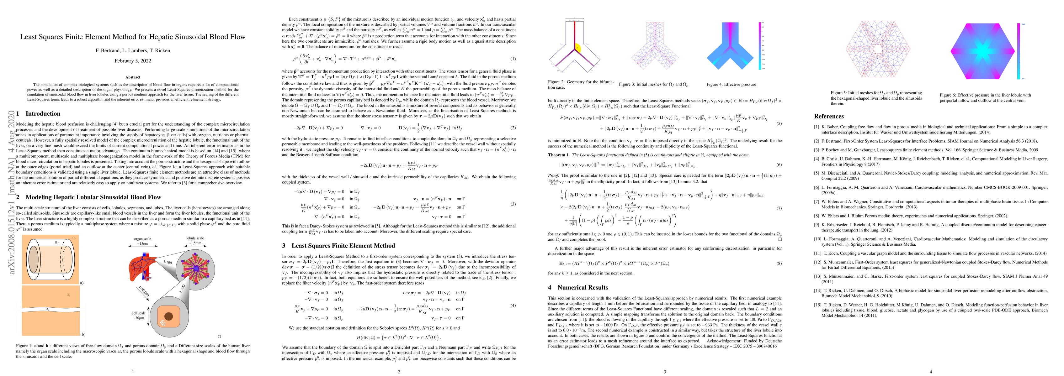 This research introduces a novel Least-Squares Finite Element Method to simulate blood flow in liver lobules, utilizing a porous medium approach for liver tissue. The method offers robustness and an efficient refinement strategy via an inherent error estimator.