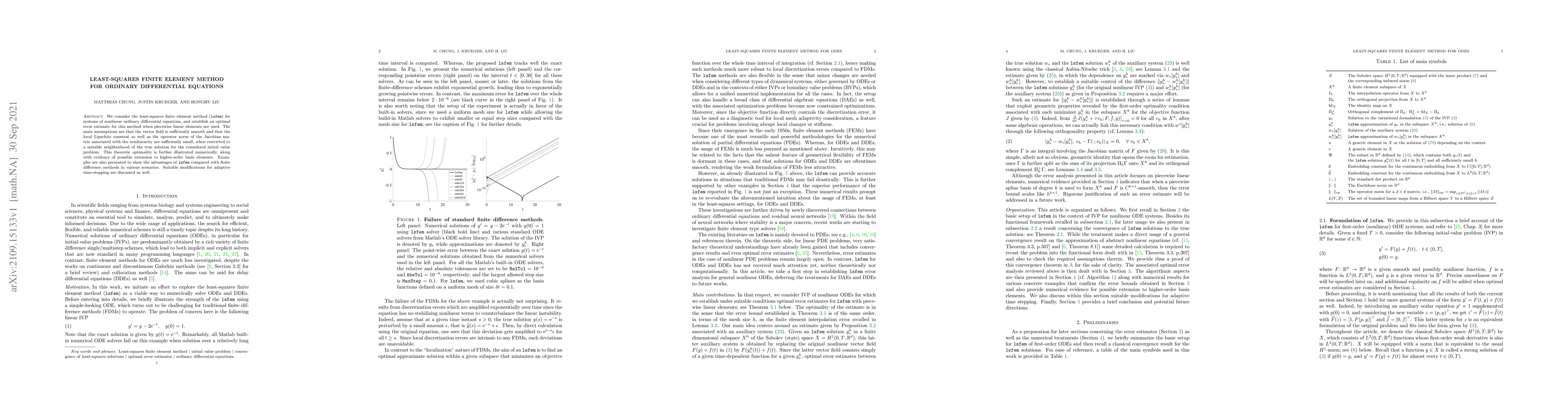 This paper establishes an optimal error estimate for the least-squares finite element method (lsfem) applied to nonlinear ordinary differential equations, demonstrating its theoretical optimality and numerical advantages over finite difference methods. It also explores potential extensions to higher-order basis elements and adaptive time-stepping modifications.