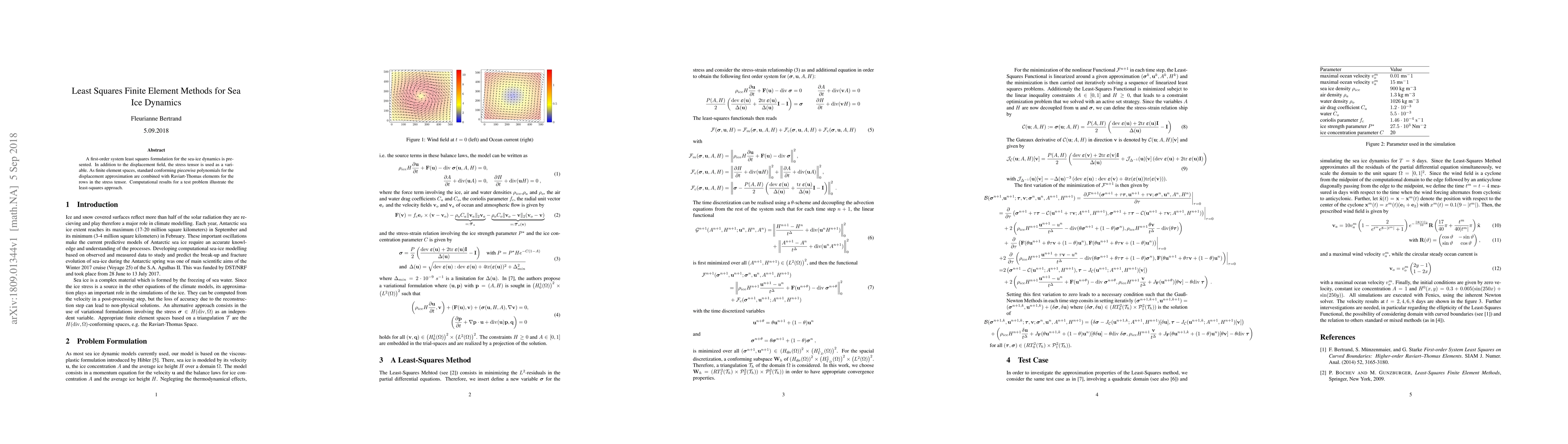 A new method for simulating sea-ice dynamics is presented, combining displacement and stress fields using a least-squares approach, which shows promising results in computational tests.
