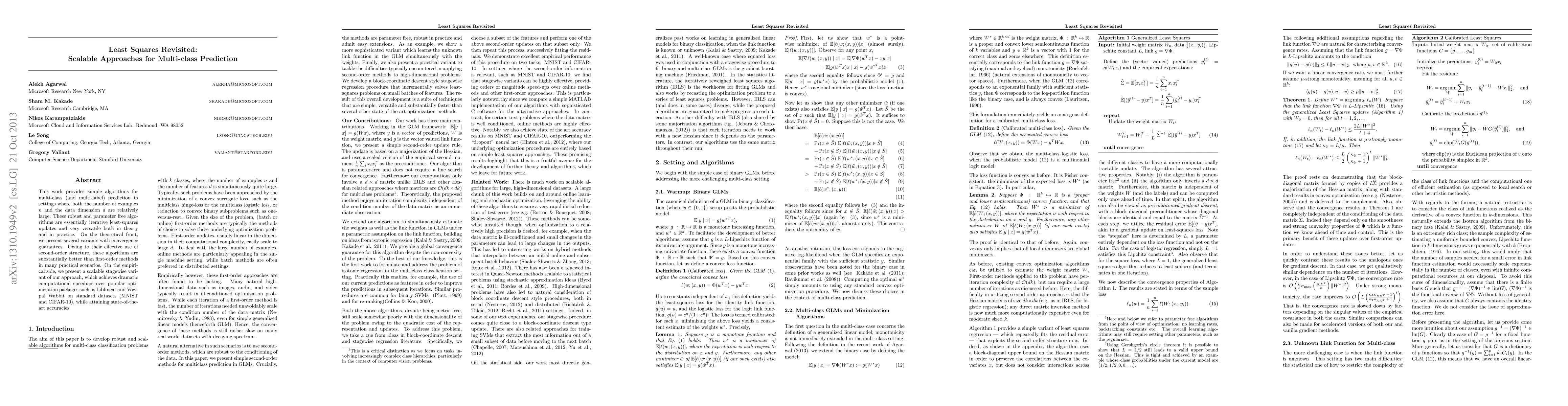 This paper introduces scalable, parameter-free algorithms for multi-class prediction based on iterative least-squares updates, offering both theoretical convergence guarantees and practical speedups. Empirical results show significant performance improvements over existing optimization packages on datasets like MNIST and CIFAR-10.