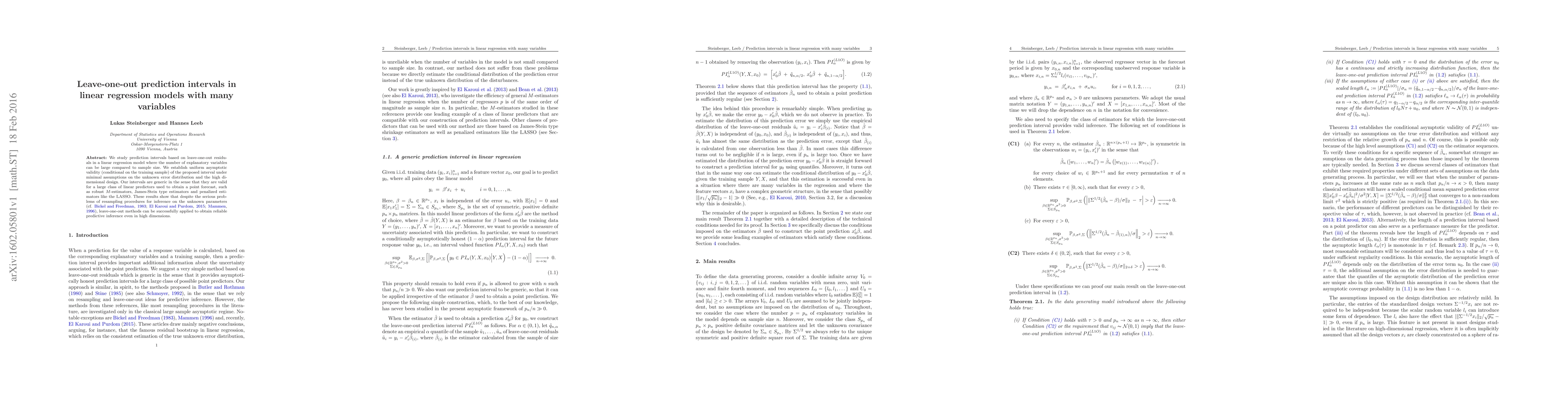 This paper proposes leave-one-out prediction intervals for linear regression models with many variables relative to the sample size, demonstrating their uniform asymptotic validity under minimal assumptions. The intervals are applicable to various linear predictors, showing reliable predictive inference despite high-dimensional challenges.