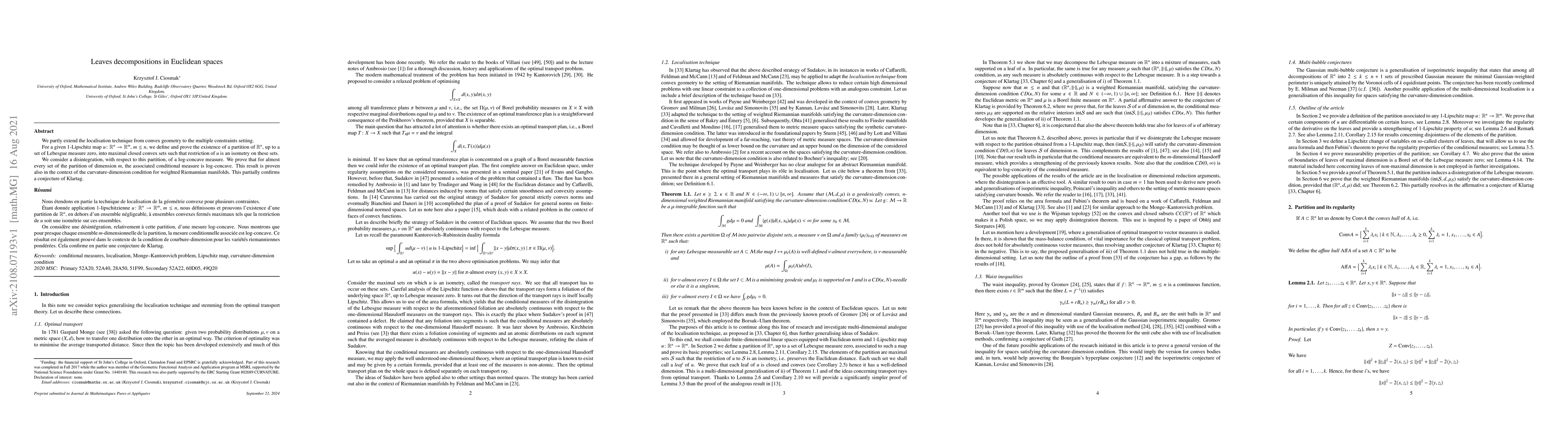 Researchers extend localization technique to multiple constraints setting, proving existence of partitioning of Euclidean space into maximal closed convex sets where function is an isometry, confirming a conjecture on log-concave measures.