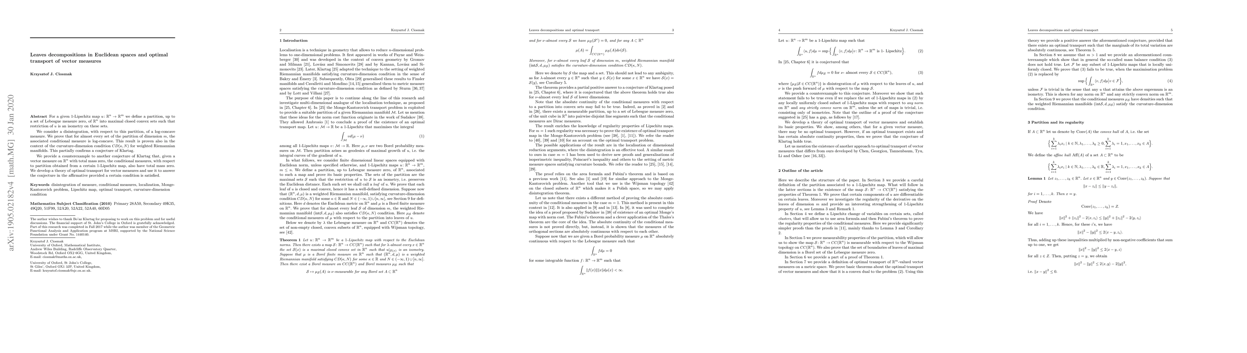 This paper defines a partition of $\mathbb{R}^n$ into maximal closed convex sets where a $1$-Lipschitz map is an isometry, and proves that conditional measures from log-concave measures on these sets are log-concave. It also disproves a conjecture by Klartag regarding mass preservation and develops a theory for optimal transport of vector measures.