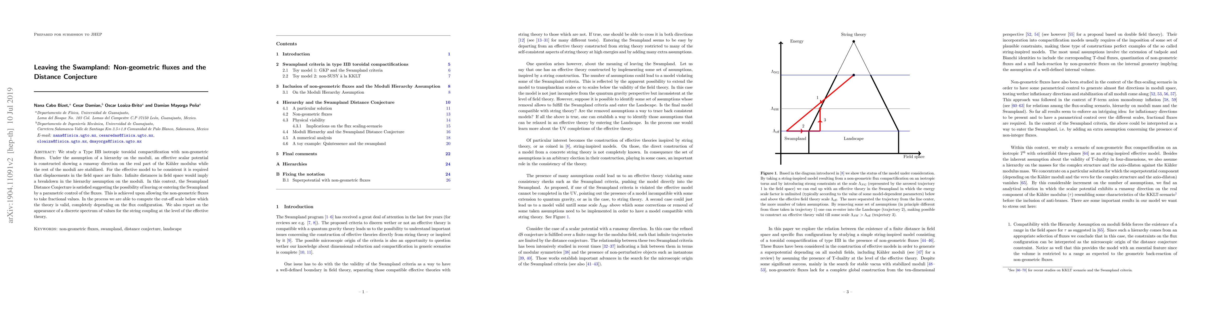 We study a Type IIB isotropic toroidal compactification with non-geometric fluxes. Under the assumption of a hierarchy on the moduli, an effective scalar potential is constructed showing a runaway direction on the real part of the K\"ahler modulus while the rest of the moduli are stabilized. For the effective model to be consistent it is required that displacements in the field space are finite. Infinite distances in field space would imply a breakdown in the hierarchy assumption on the moduli. In this context, the Swampland Distance Conjecture is satisfied suggesting the possibility of leaving or entering the Swampland by a parametric control of the fluxes. This is achieved upon allowing the non-geometric fluxes to take fractional values. In the process we are able to compute the cut-off scale below which the theory is valid, completely depending on the flux configuration. We also report on the appearance of a discrete spectrum of values for the string coupling at the level of the effective theory.