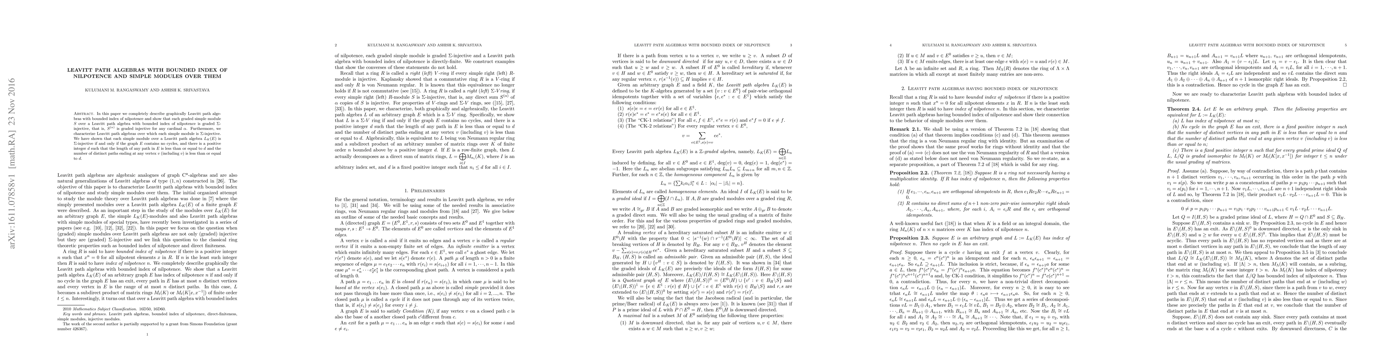 This paper identifies Leavitt path algebras with a bounded index of nilpotence, proving that their simple graded modules are graded $\Sigma$-injective. It also characterizes such algebras where all simple modules are $\Sigma$-injective, finding that this occurs when the underlying graph contains no cycles and has bounded path lengths and vertex exit paths.