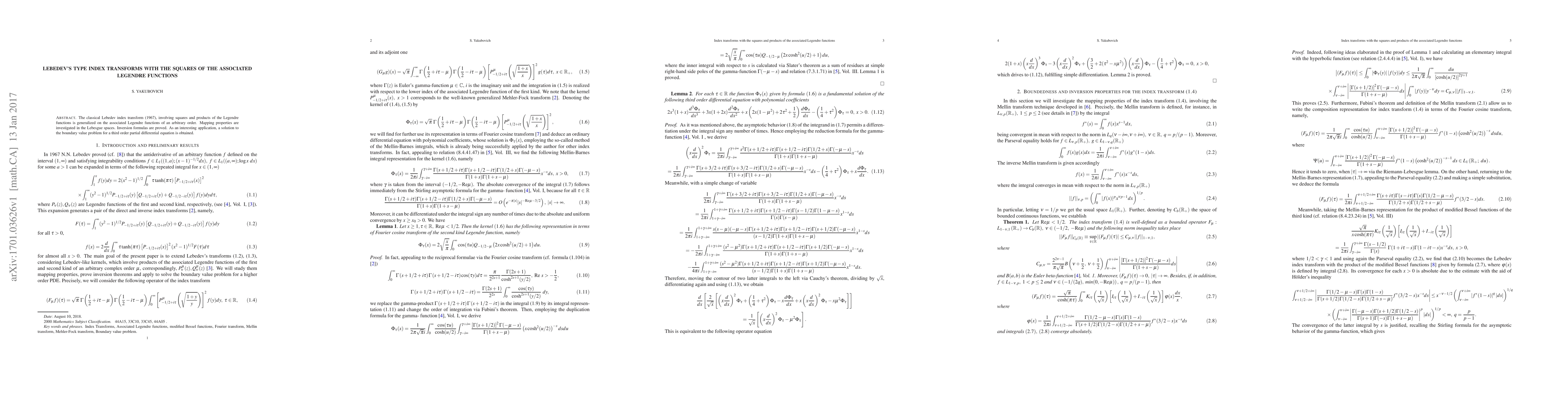 The classical Lebedev index transform (1967), involving squares and products of the Legendre functions is generalized on the associated Legendre functions of an arbitrary order. Mapping properties are investigated in the Lebesgue spaces. Inversion formulas are proved. As an interesting application, a solution to the boundary value problem for a third order partial differential equation is obtained.