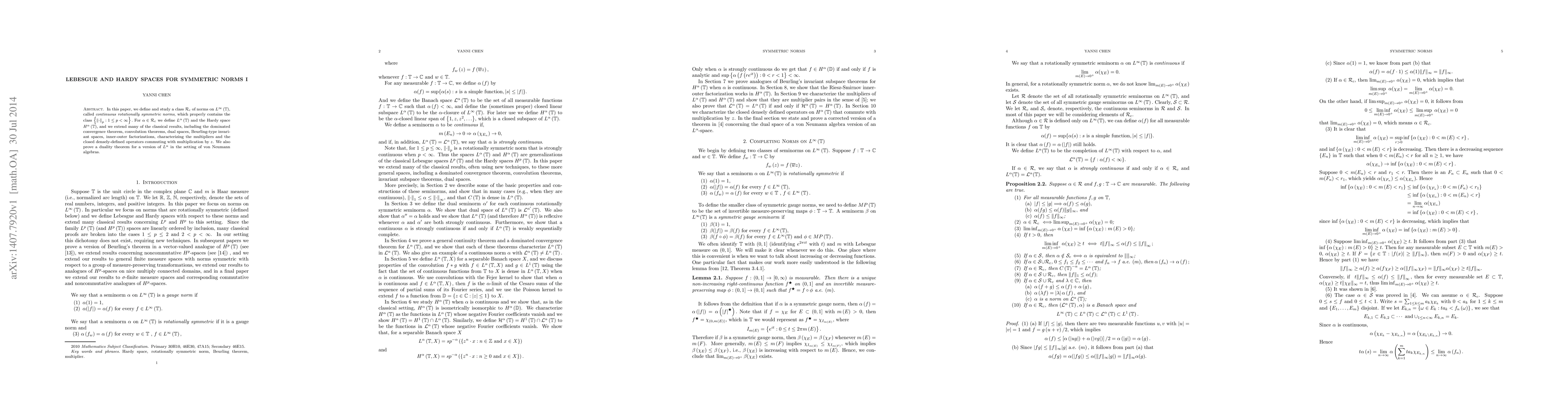 In this paper, we define and study a class $\mathcal{R}_{c}$ of norms on $L^{\infty}\left( \mathbb{T}\right) $, called $continuous\ rotationally\ symmetric \ norms$, which properly contains the class $\left \{ \left \Vert \cdot \right \Vert _{p}:1\leq p<\infty \right \} .$ For $\alpha \in \mathcal{R}% _{c}$ we define $L^{\alpha}\left( \mathbb{T}\right) $ and the Hardy space $H^{\alpha}\left( \mathbb{T}\right) $, and we extend many of the classical results, including the dominated convergence theorem, convolution theorems, dual spaces, Beurling-type invariant spaces, inner-outer factorizations, characterizing the multipliers and the closed densely-defined operators commuting with multiplication by $z$. We also prove a duality theorem for a version of $L^{\alpha}$ in the setting of von Neumann algebras.