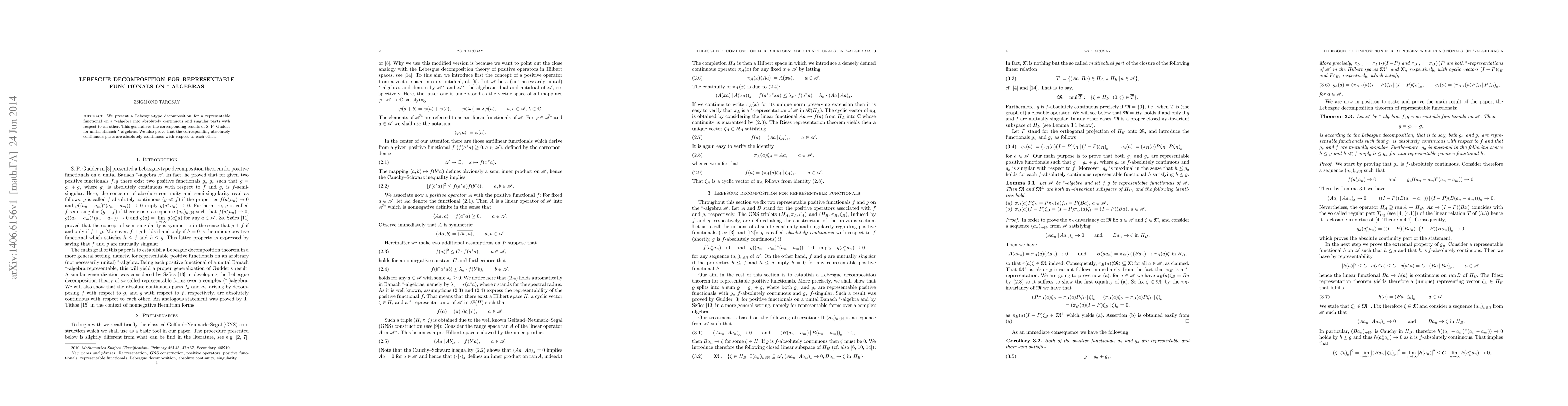 We present a Lebesgue-type decomposition for a representable functional on a $^*$-algebra into absolutely continuous and singular parts with respect to an other. This generalizes the corresponding results of S. P. Gudder for unital Banach $^*$-algebras. We also prove that the corresponding absolutely continuous parts are absolutely continuous with respect to each other.