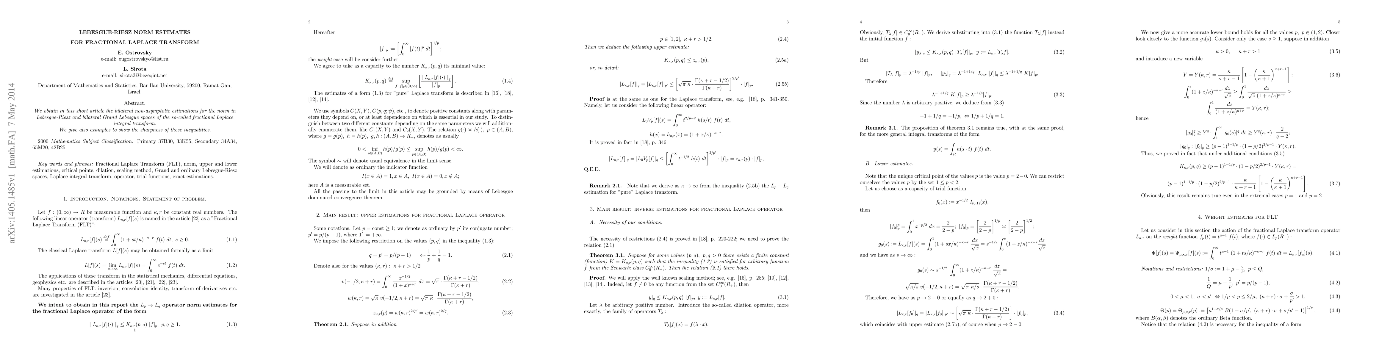 We obtain in this short article the bilateral non-asymptotic estimations for the norm in Lebesgue-Riesz and bilateral Grand Lebesgue spaces of the so-called fractional Laplace integral transform. We give also examples to show the sharpness of these inequalities.