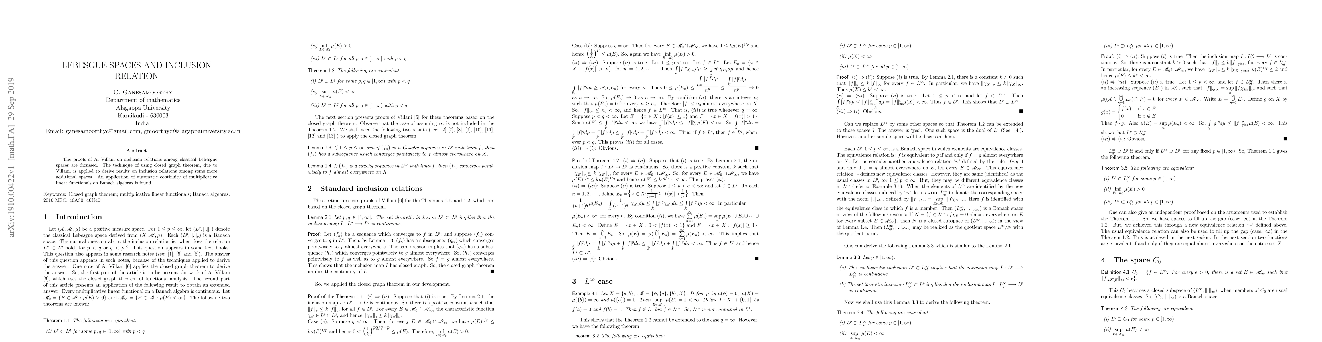 This paper discusses the inclusion relations among classical Lebesgue spaces using Villani's technique of closed graph theorem and automatic continuity of multiplicative linear functionals on Banach algebras.