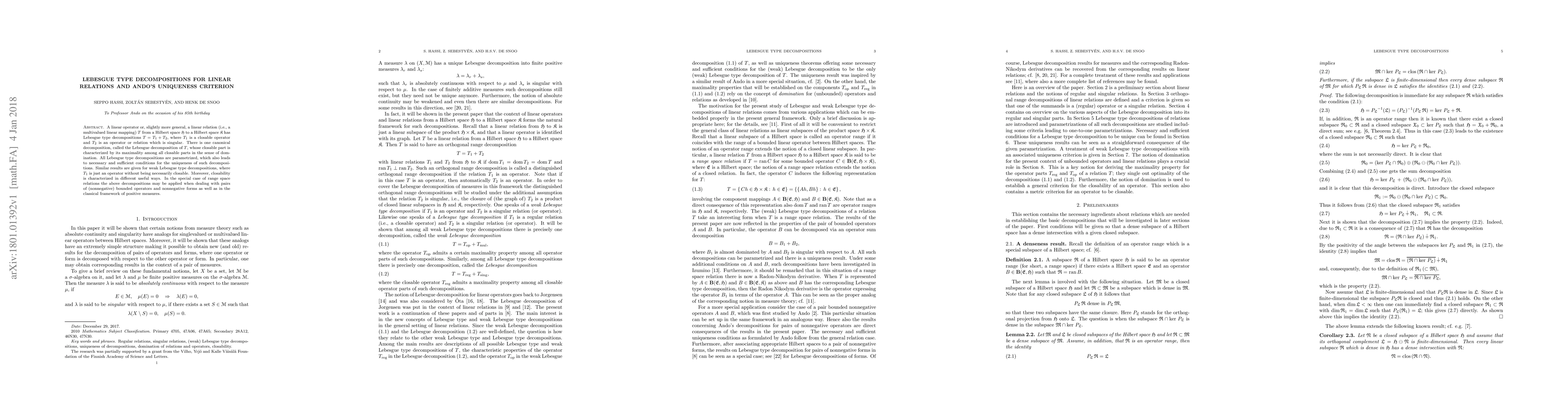 This paper introduces Lebesgue type decompositions for linear relations in Hilbert spaces, providing conditions for uniqueness and applying them to bounded operators and positive measures.