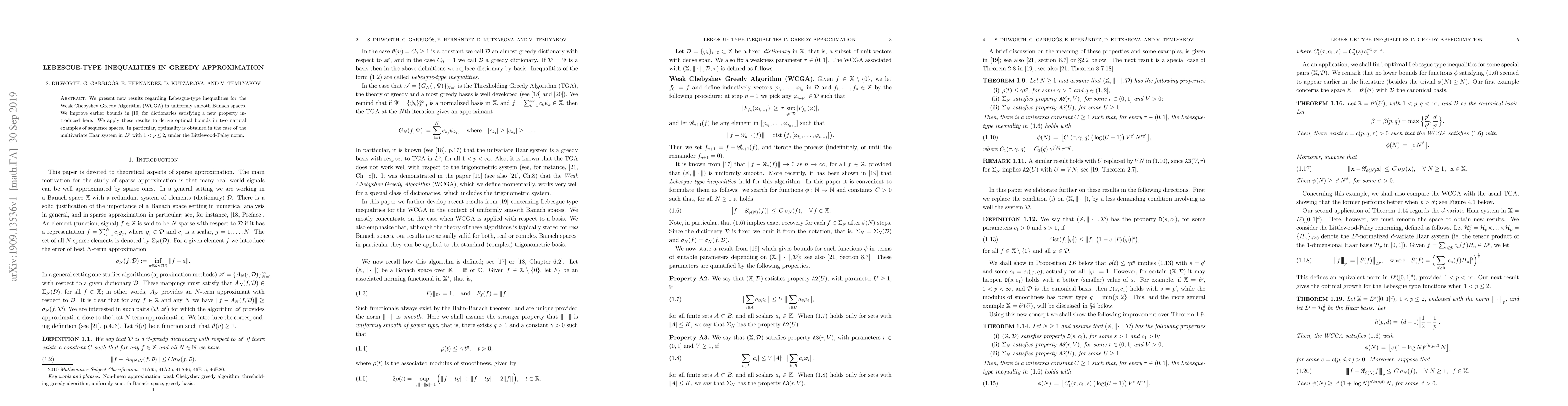 This paper improves Lebesgue-type inequalities for the Weak Chebyshev Greedy Algorithm in uniformly smooth Banach spaces, applying new bounds to derive optimal results in specific sequence spaces, notably the multivariate Haar system in Lp with 1<p<2 under the Littlewood-Paley norm.