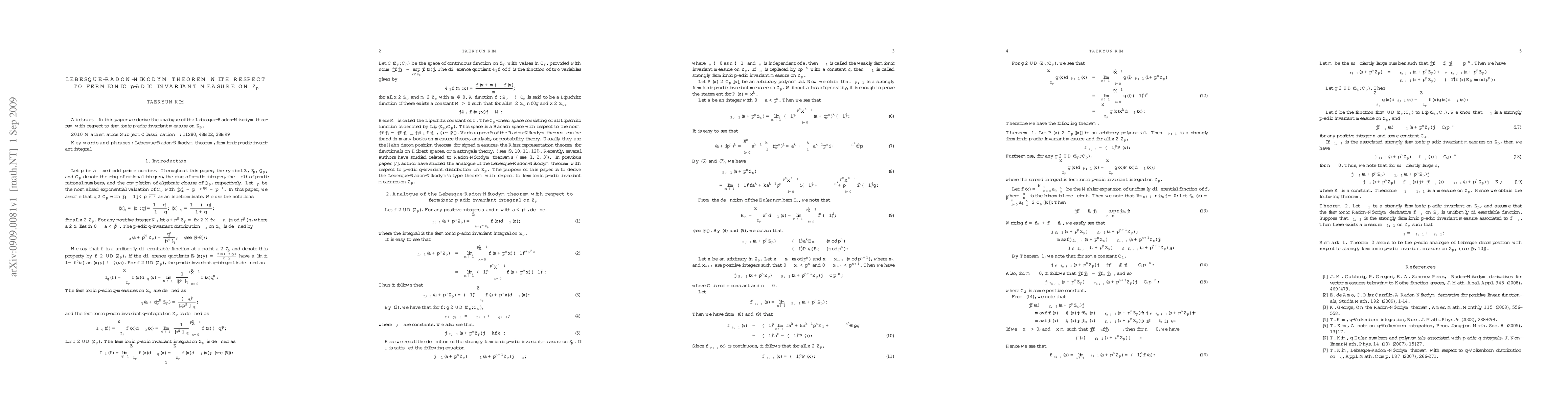Summary: This paper establishes an analogue of the Lebesgue-Radon-Nikodym theorem concerning fermionic p-adic invariant measures on the p-adic integers Zp. The study focuses on the structural properties and measure-theoretic implications of these measures.