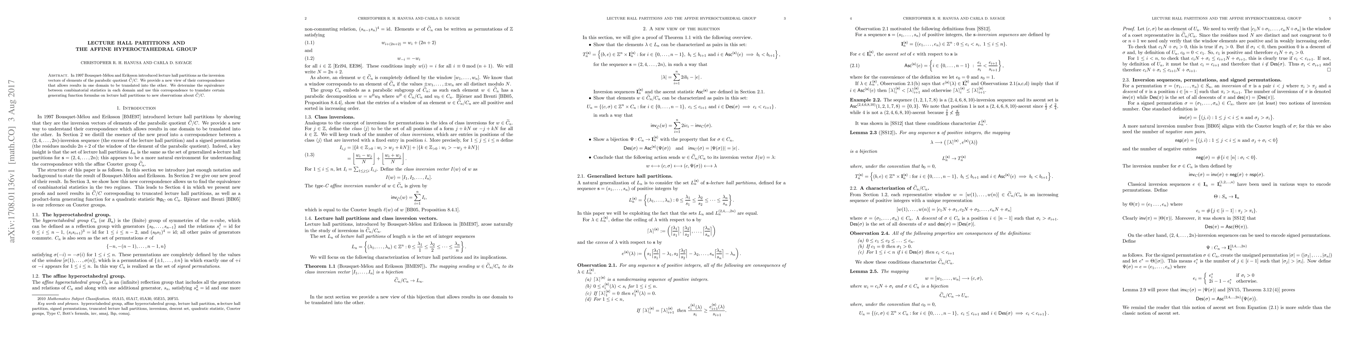 This paper explores the relationship between lecture hall partitions and the affine hyperoctahedral group, providing a new perspective on their correspondence and translating combinatorial statistics and generating function formulas between the two domains.