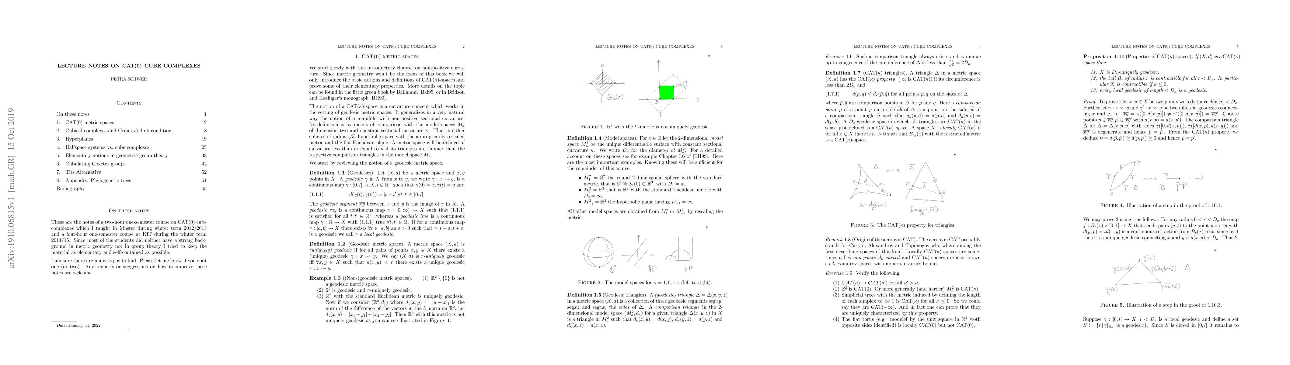 These notes grew out of two lectures I have given on CAT(0) cube complexes. I've tried to keep the material elementary and self-contained in order to keep the material easily accessible and to provide an elementary introduction on the topic for advanced bachelor students or early master students with little to no previous knowledge on geometric group theory or CAT(0) geometry.
