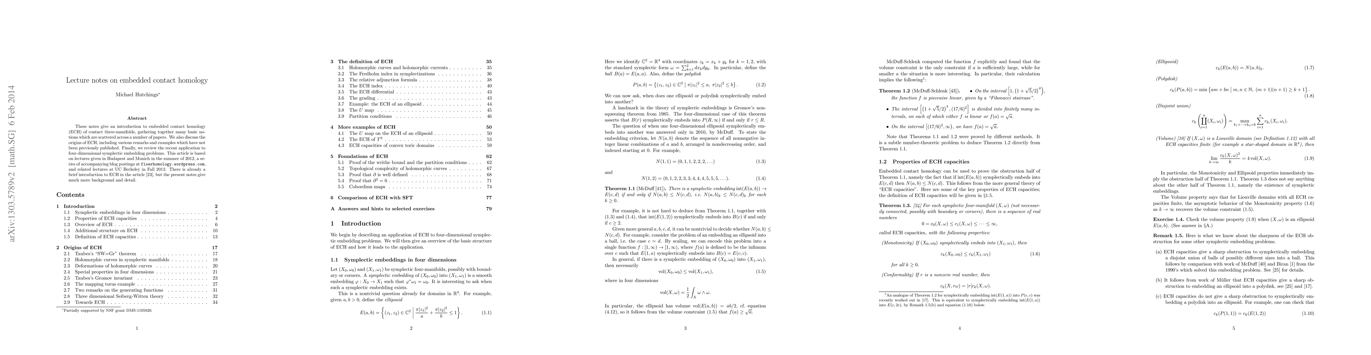 These notes give an introduction to embedded contact homology (ECH) of contact three-manifolds, gathering together many basic notions which are scattered across a number of papers. We also discuss the origins of ECH, including various remarks and examples which have not been previously published. Finally, we review the recent application to four-dimensional symplectic embedding problems. This article is based on lectures given in Budapest and Munich in the summer of 2012, a series of accompanying blog postings at floerhomology.wordpress.com, and related lectures at UC Berkeley in Fall 2012. There is already a brief introduction to ECH in the 2010 ICM proceedings, but the present notes give much more background and detail.