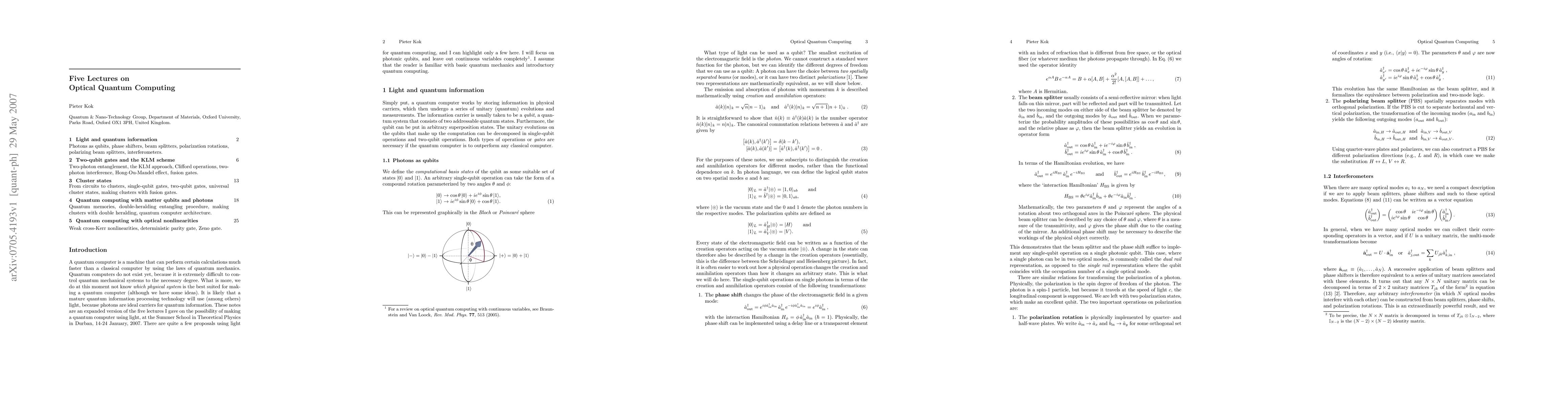 This paper explores the possibility of using light for quantum computing, focusing on photonic qubits and assuming a basic understanding of quantum mechanics. It discusses various proposals and their potential applications in creating a mature quantum information processing technology.