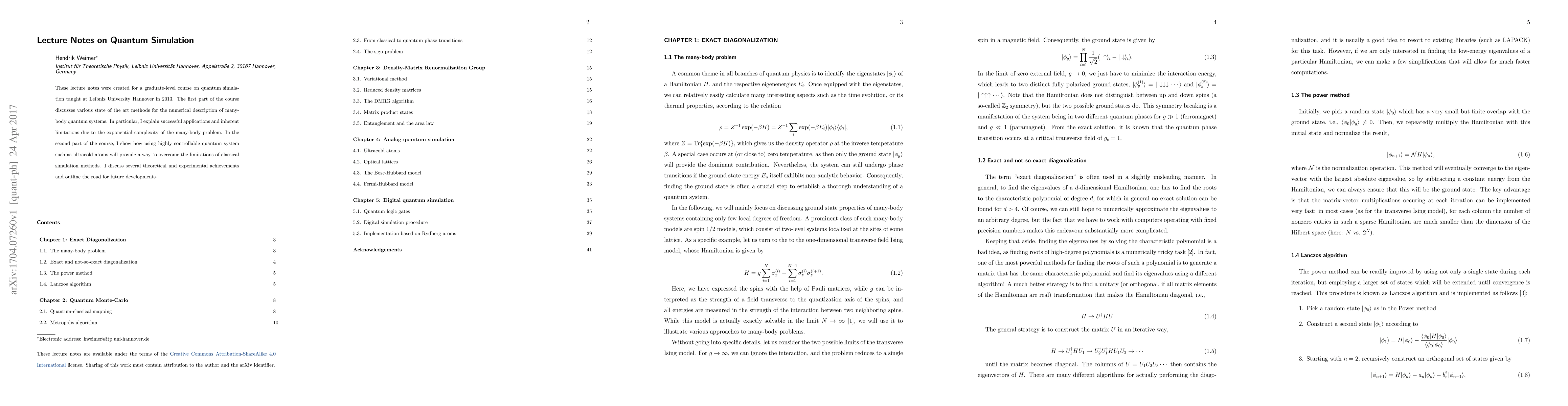 This lecture notes discusses quantum simulation methods to overcome exponential complexity in many-body systems, using controlled quantum systems like ultracold atoms to achieve theoretical and experimental breakthroughs.