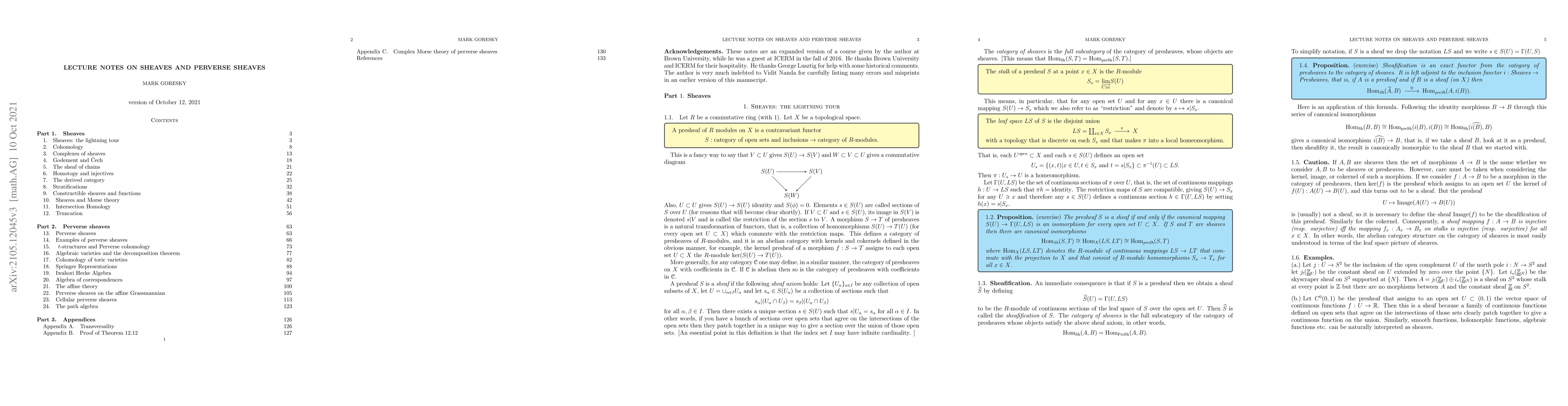 This paper offers informal lecture notes on sheaf theory and perverse sheaves, including examples and applications to representation theory, with a focus on the derived category of sheaves and connections to Morse theory, supplemented by outlined proofs and references for further details. Updated in October 2021, it introduces cellular perverse sheaves.