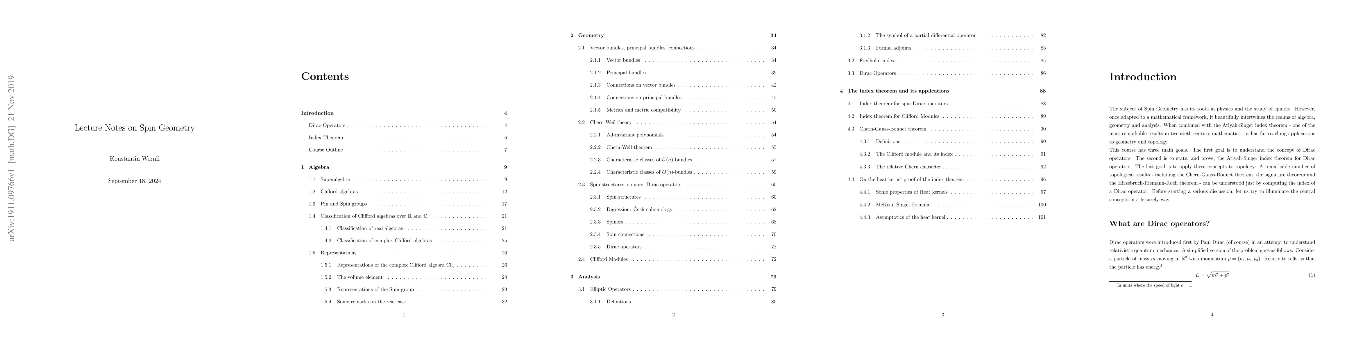We review the Atiyah-Singer Index theorem and some applications. Only basic knowledge of differential geometry and Lie groups is required.
