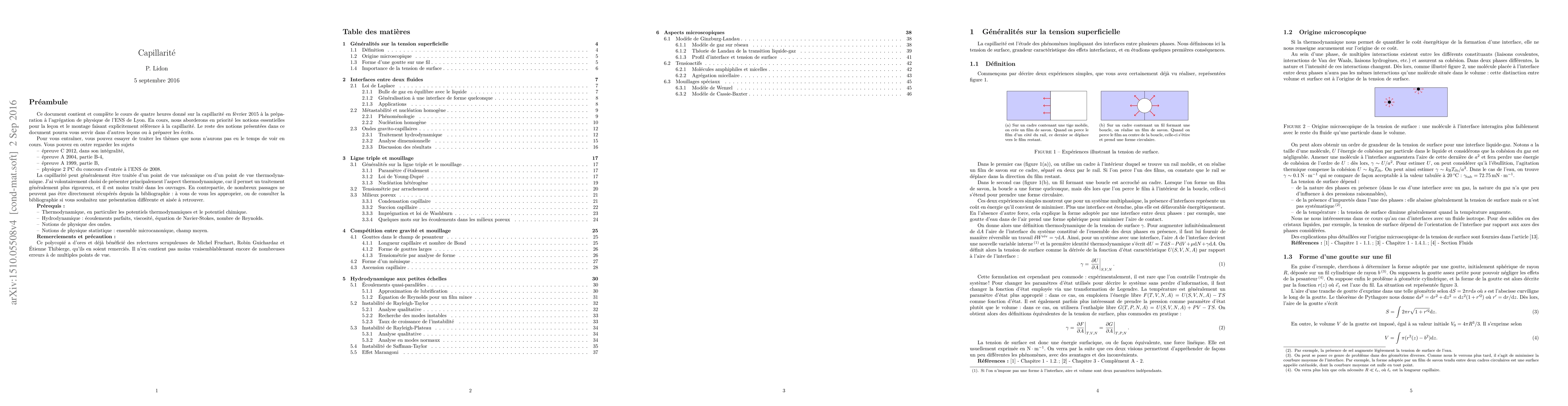 Lecture notes in french of the lecture on surface tension given in 2015 and 2016 at the preparation to "Agr\'egation de physique" in the Ecole Normale Sup\'erieure de Lyon