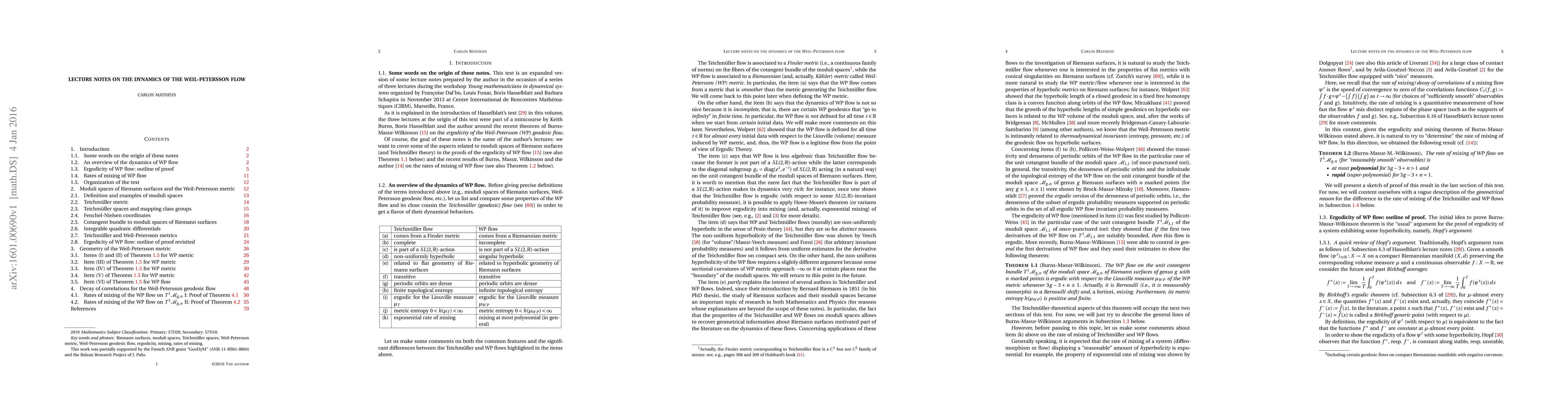 This paper provides lecture notes on the dynamics of the Weil-Petersson flow, focusing on its ergodicity and connections to moduli spaces of Riemann surfaces.