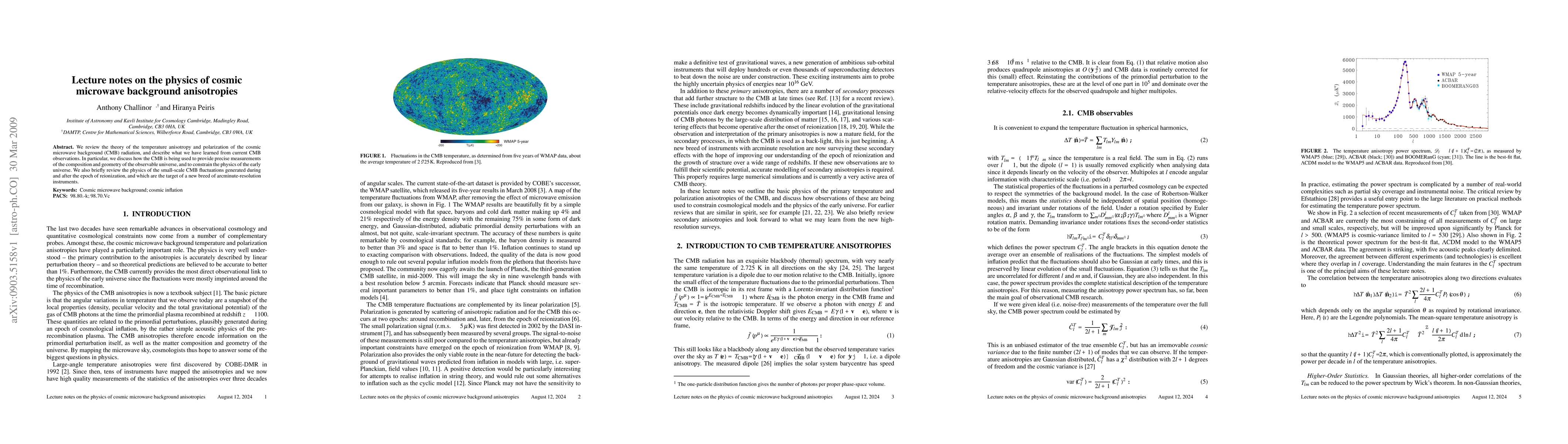 We review the theory of the temperature anisotropy and polarization of the cosmic microwave background (CMB) radiation, and describe what we have learned from current CMB observations. In particular, we discuss how the CMB is being used to provide precise measurements of the composition and geometry of the observable universe, and to constrain the physics of the early universe. We also briefly review the physics of the small-scale CMB fluctuations generated during and after the epoch of reionization, and which are the target of a new breed of arcminute-resolution instruments.