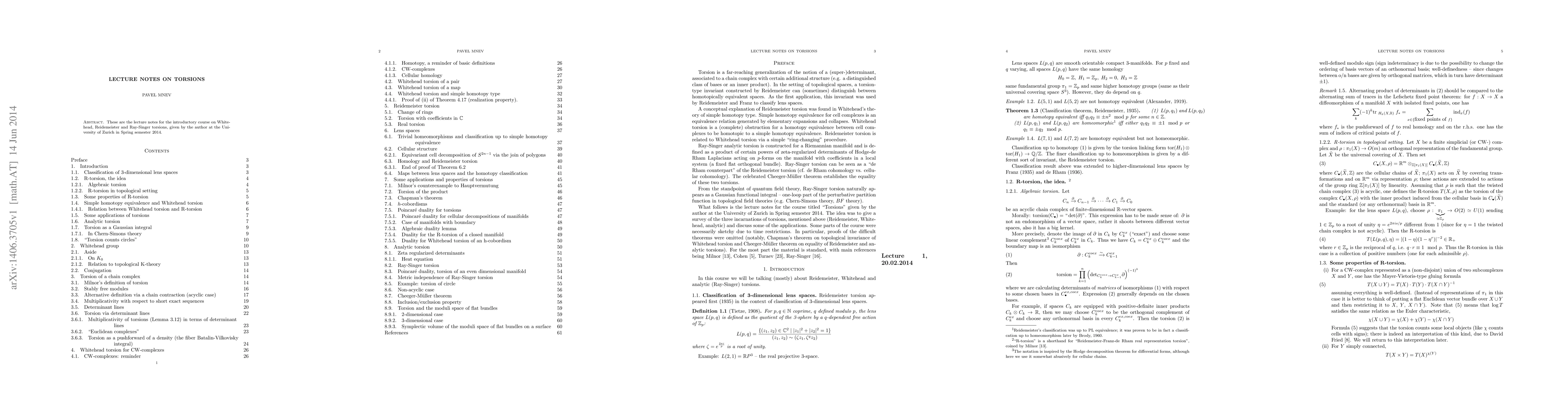 These lecture notes provide an introduction to Whitehead, Reidemeister, and Ray-Singer torsions, concepts fundamental in algebraic topology, presented in a course at the University of Zurich in Spring 2014. The material covers theoretical foundations and applications of these torsion theories.