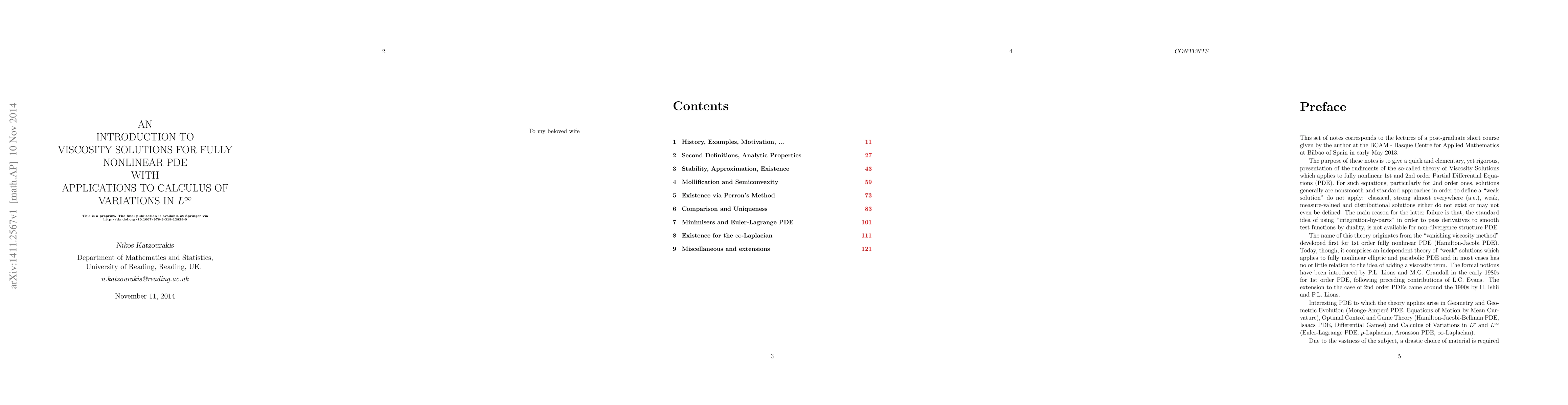 The purpose of these expository notes is to give a quick and elementary, yet rigorous, presentation of the rudiments of the theory of Viscosity Solutions for fully nonlinear 2nd order PDE, with applications to Calculus of Variations in the space $L^\infty$.