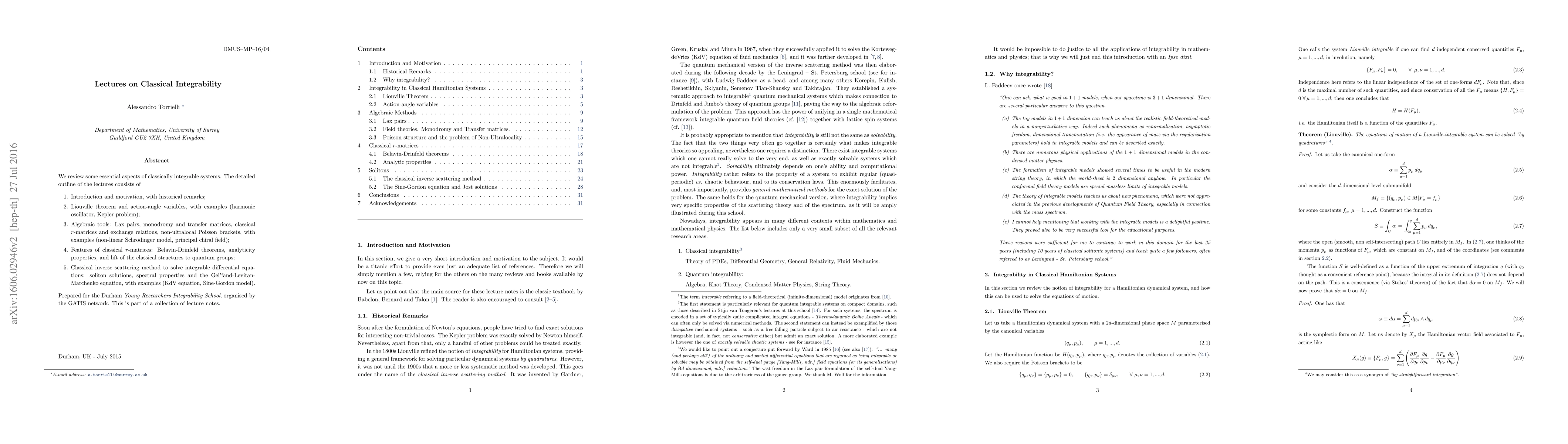The paper systematically presents essential concepts and tools in classical integrability, offering a valuable resource for understanding the theoretical underpinnings of integrable systems.