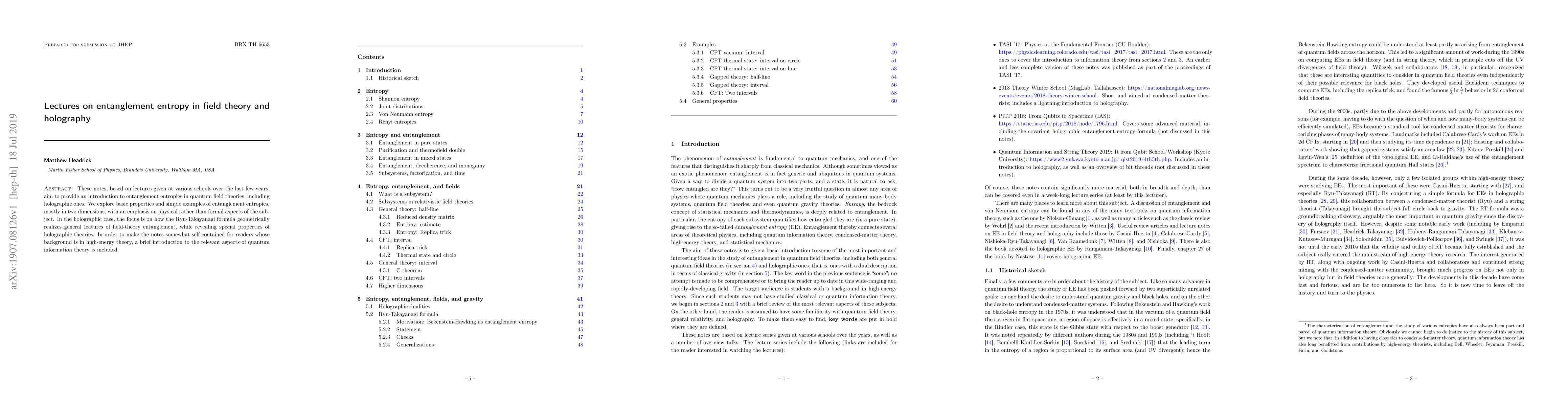 These notes, based on lectures given at various schools over the last few years, aim to provide an introduction to entanglement entropies in quantum field theories, including holographic ones. We explore basic properties and simple examples of entanglement entropies, mostly in two dimensions, with an emphasis on physical rather than formal aspects of the subject. In the holographic case, the focus is on how the Ryu-Takayanagi formula geometrically realizes general features of field-theory entanglement, while revealing special properties of holographic theories. In order to make the notes somewhat self-contained for readers whose background is in high-energy theory, a brief introduction to the relevant aspects of quantum information theory is included.