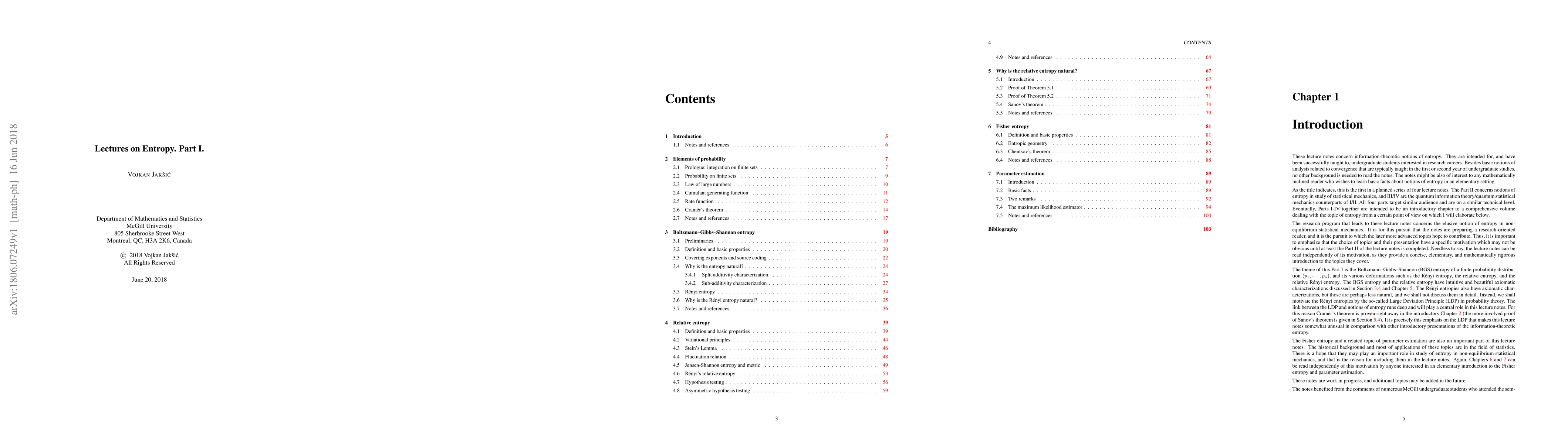These lecture notes concern information-theoretic notions of entropy. They are intended for, and have been successfully taught to, undergraduate students interested inresearch careers. Besides basic notions of analysis related to convergence that are typically taught in the first or second year of undergraduate studies, no other background is needed to read the notes. The notes might be also of interest to any mathematically inclined reader who wishes to learn basic facts about notions of entropy in an elementary setting.