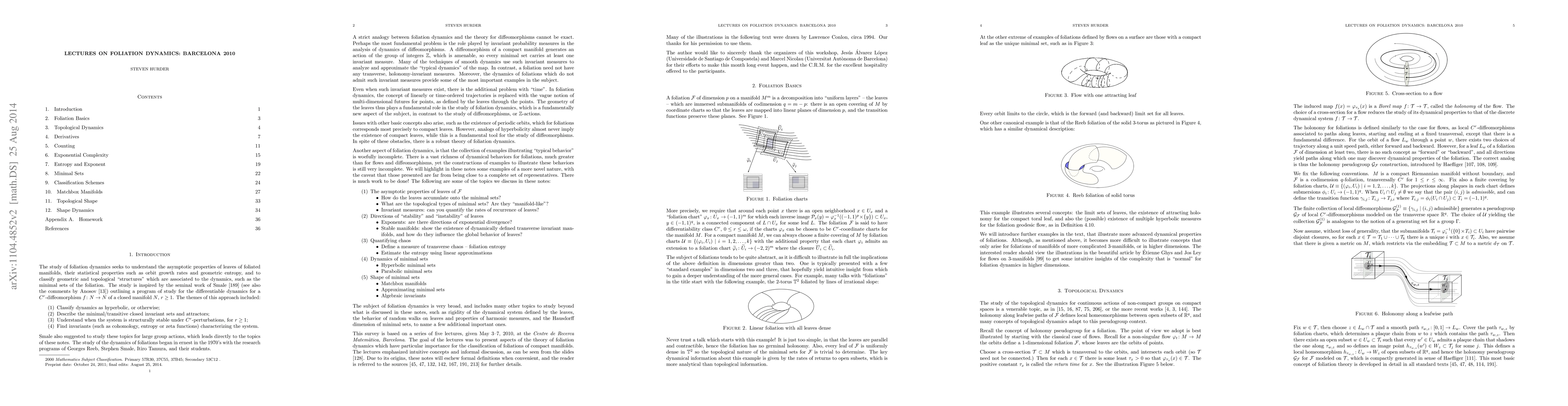 This survey compiles five lectures from May 2010 on foliation dynamical systems, focusing on their classification and active research areas. It includes recent developments, extensive references, open questions, and homework problems for each lecture day.