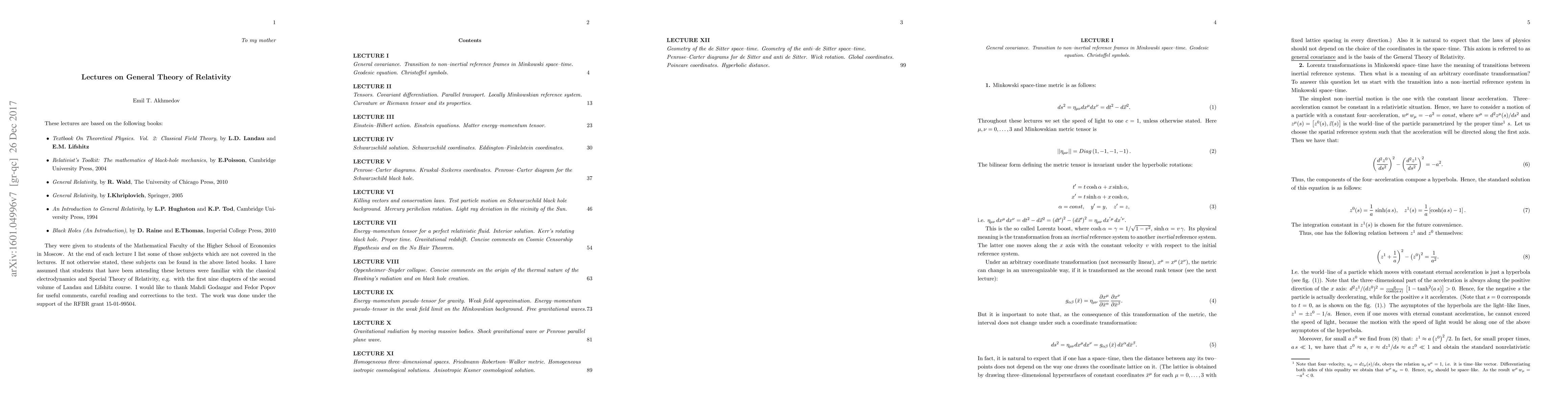 These are lectures on General Theory of Relativity that were given to students of the Mathematical Faculty of the Higher School of Economics in Moscow.