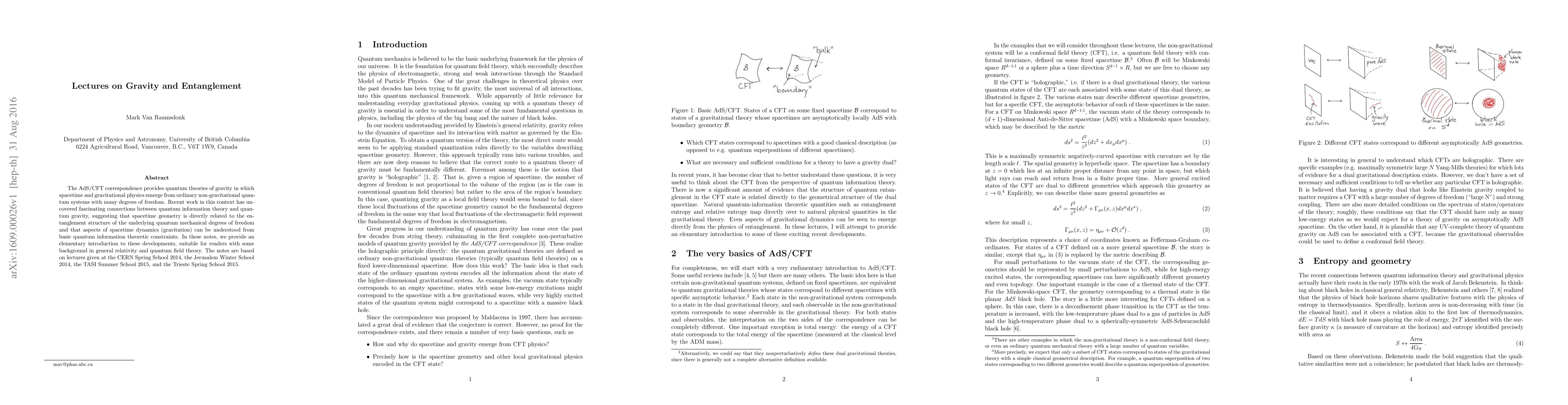 This paper introduces the AdS/CFT correspondence, illustrating how quantum gravity and spacetime emerge from non-gravitational quantum systems. It highlights the relationship between quantum information theory and quantum gravity, suggesting that spacetime geometry is linked to the entanglement structure of quantum degrees of freedom.