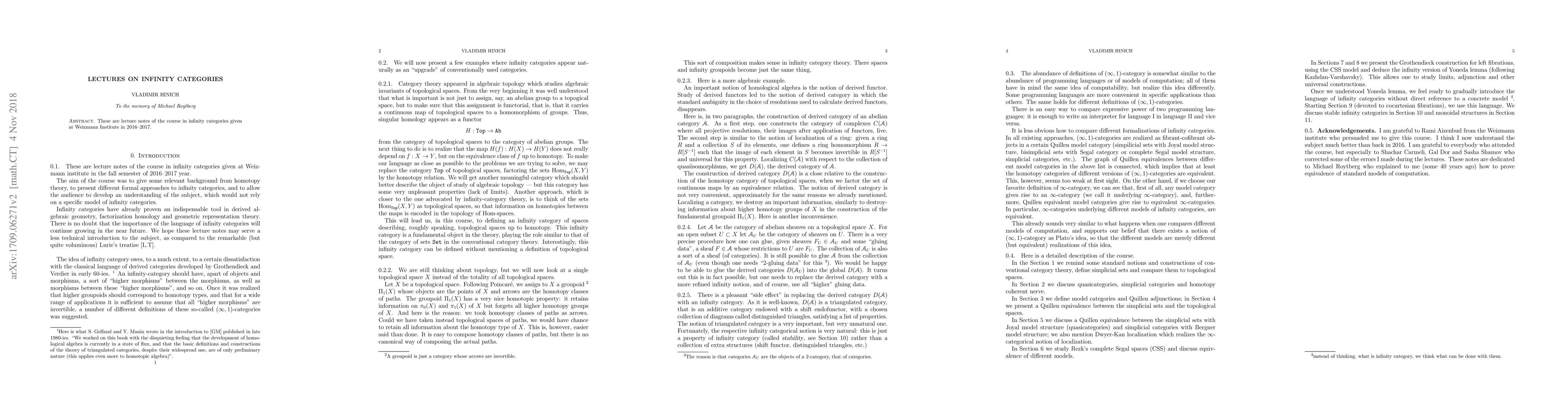 These are lecture notes of the course in infinity categories given in the fall 2016 at Weizmann Institute.