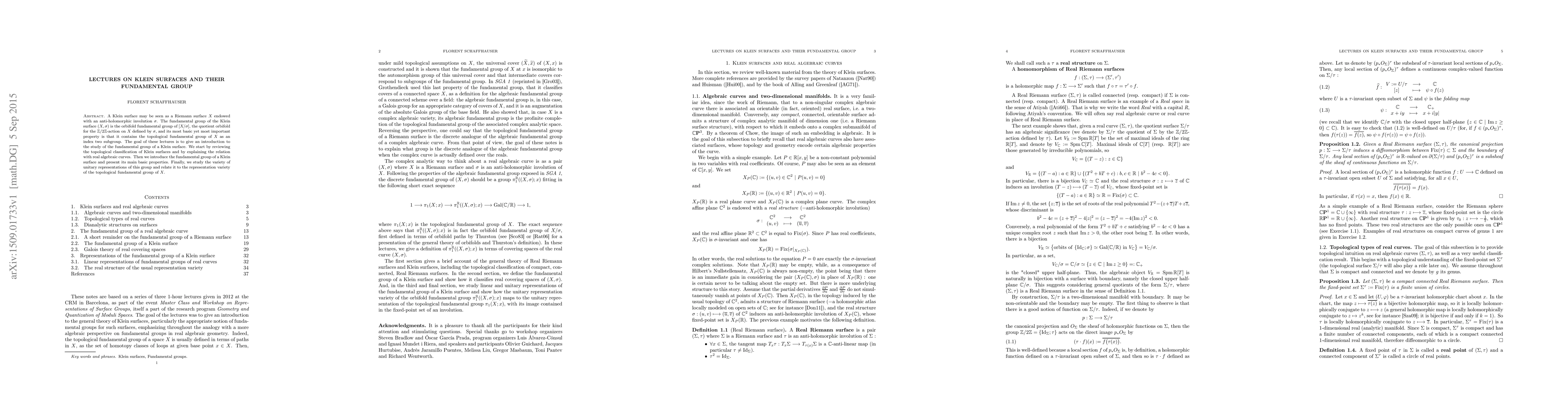 The goal of these lectures is to give an introduction to the study of the fundamental group of a Klein surface. We start by reviewing the topological classification of Klein surfaces and by explaining the relation with real algebraic curves. Then we introduce the fundamental group of a Klein surface and present its main basic properties. Finally, we study the variety of unitary representations of this group and relate it to the representation variety of the topological fundamental group of the underlying Riemann surface.